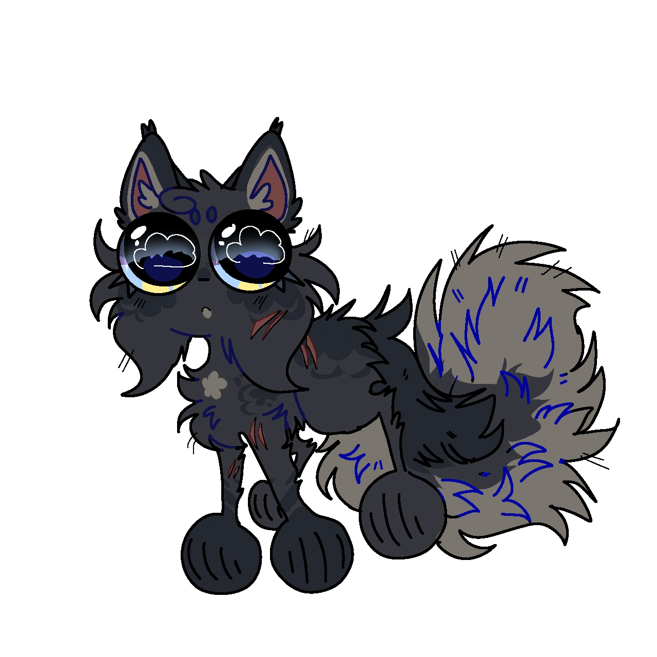 Hollysky (GER:Distelhimmel), is a black she-cat with blue eyes and a scar on her right cheek,Arms and Flank.
